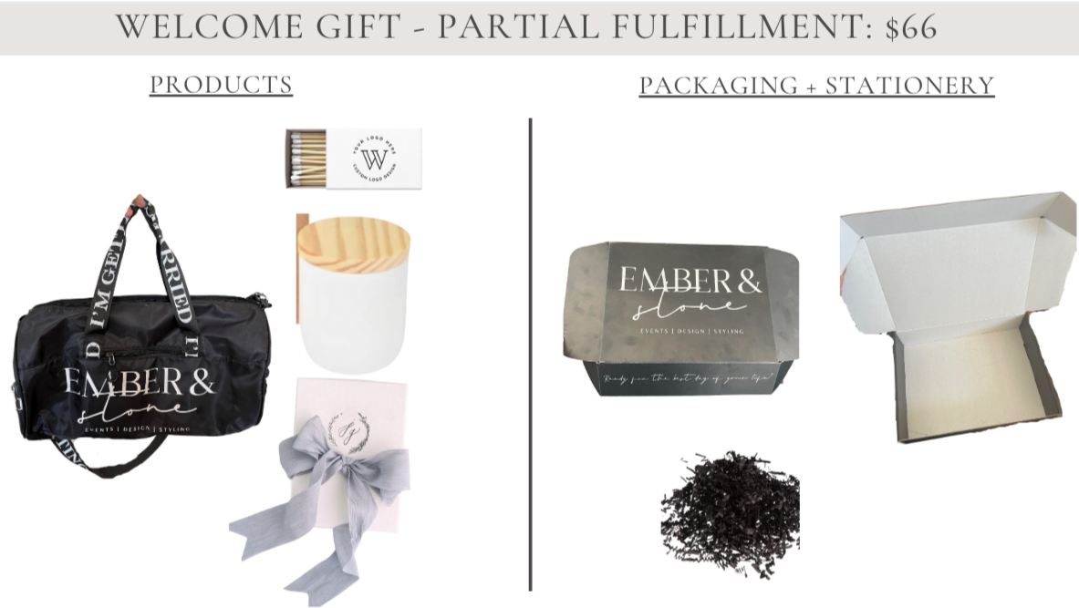 - Curated gift orders ship from our studio within 1–3 business days via USPS or UPS. Pre-filled Welcome Gifts takes 7-10 business days to fulfill depending on volume. All orders ship from Connecticut via USPS or UPS, with tracking provided. Local delivery available for select events, contact us to learn more.